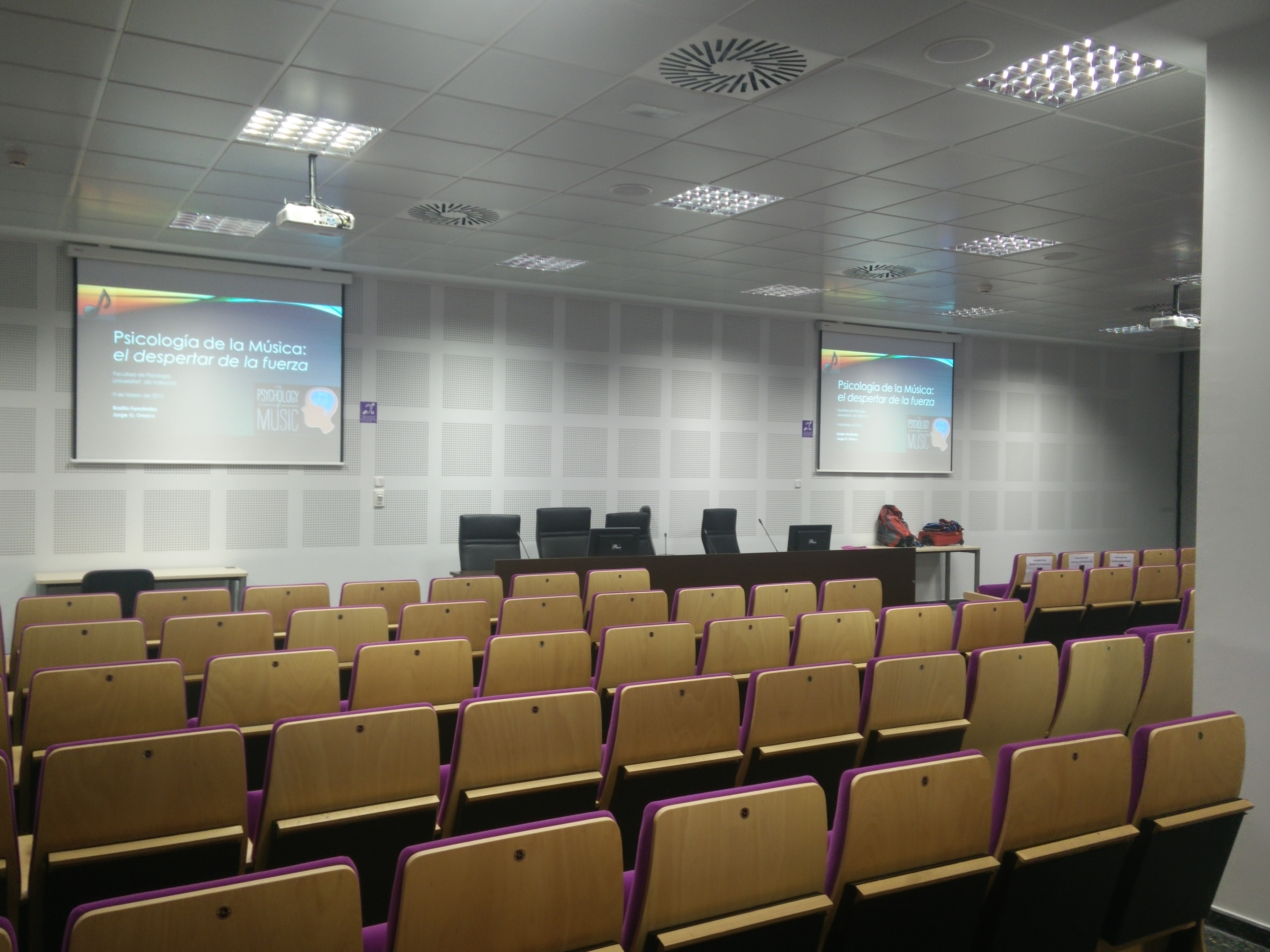 En ella se hizo un breve repaso a las áreas más importantes de la psicología de la música, con especial énfasis en la psicología de la interpretación y la psicología educativa de la música, animando a los estudiantes a participar en las investigaciones en esta área. A continuación se presentó AEPMIM dentro del contexto de las diferentes asociaciones a nivel internacional en psicología de la música, para finalizar con unas nociones básicas acerca de la intervención en miedo escénico, aplicable a muy diversos perfiles profesionales. A esta actividad asistieron alumnos del conservatorio profesional y superior de Valencia, y mayoritariamente estudiantes de la propia facultad, que mostraron un gran interés y grado de participación. De entre todos los materiales empleados, destacó un vídeo que tuvo un enorme impacto emocional, reconocido por la mayoría de los asistentes al evento. En este vídeo, que mostramos a continuación, Neus Ferri cuenta de qué manera se enfrentó al miedo escénico que comenzó a atenazarle en el momento más inoportuno e inesperado. Nuestro agradecimiento por un lado a la labor de Jorge Orozco, co-protagonista indirecto de la historia, como pionero de la intervención en miedo escénico en los conservatorios desde 1999, y varias décadas implicado en este campo tan olvidado en España. Y por otro, nuestra verdadera admiración por Neus Ferri, por su valentía y su capacidad de crecimiento personal a partir de las dificultades de la vida, especialmente a partir de aquella barrera que le parecía insalvable. Las dificultades como reto: eso es la madurez en el desarrollo humano. Enhorabuena Neus!. Nuestro último agradecimiento también a la decana de la Facultad, Mª Dolores Sancerni, por la invitación a participar en estas jornadas, con la esperanza de que la psicología de la música, de un modo u otro, ocupe un lugar dentro de estas instituciones en un futuro cercano.