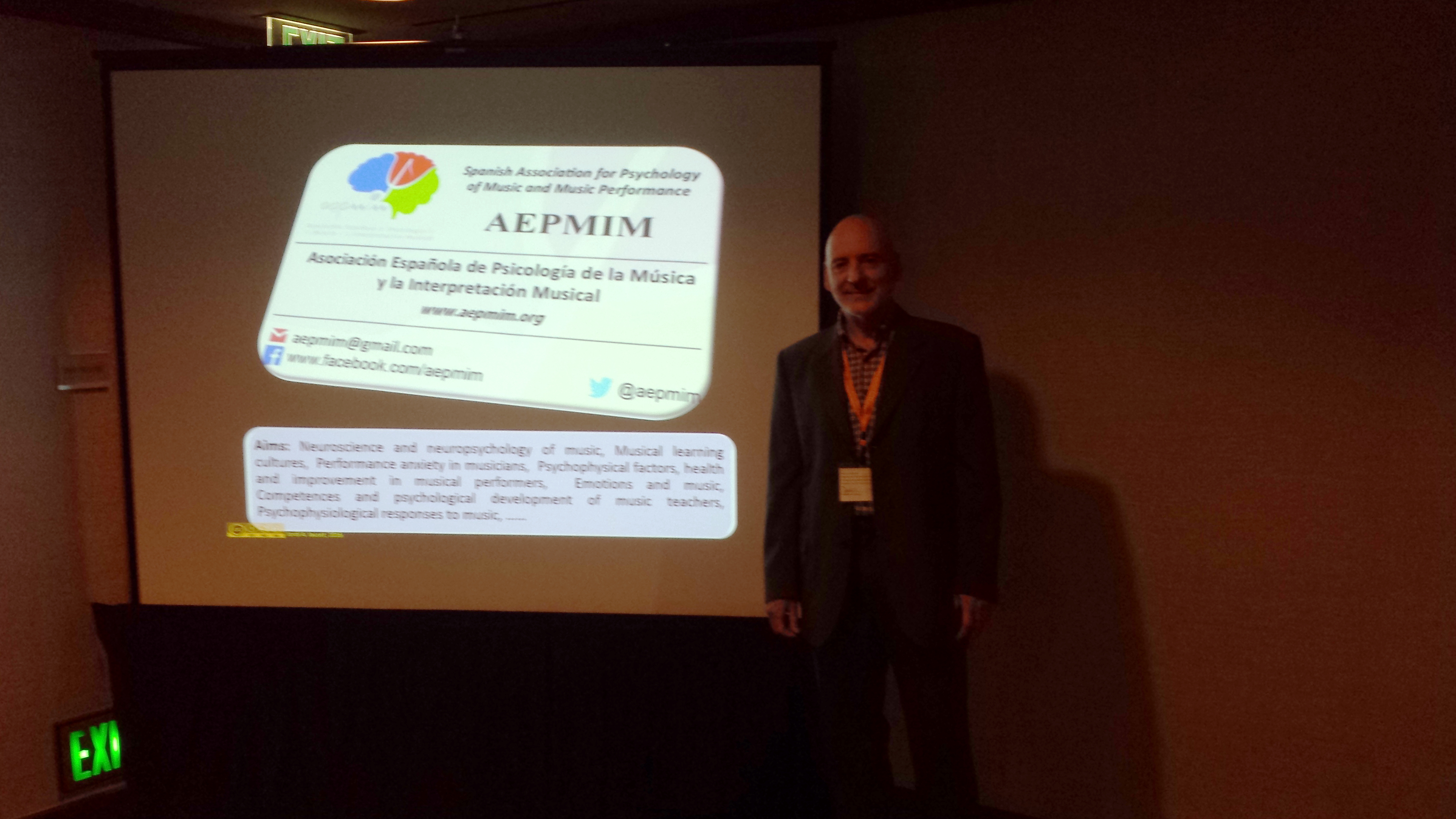 Jordi Jauset presentando AEPMIM en el ICMPC 14 de San Francisco.