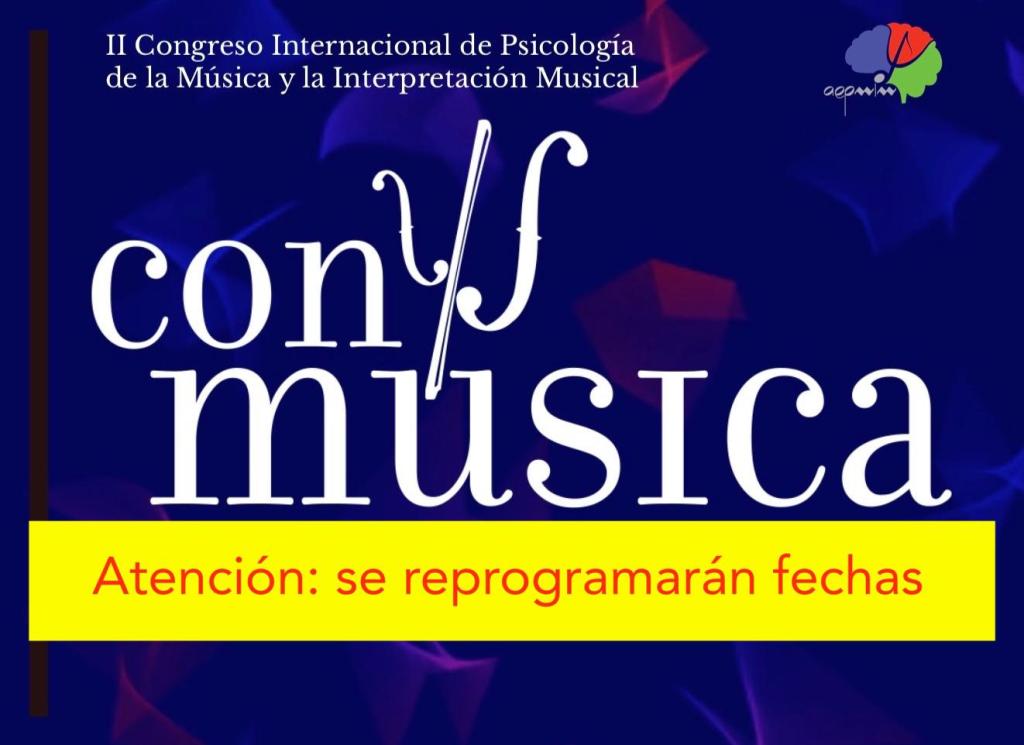 Teniendo en cuenta la situación excepcional en la que nos encontramos debido a la pandemia del Covid-19, lamentamos anunciar que la 2ª edición del congreso Conspimusica2020 se pospone para el curso 2020/2021. La junta directiva de la AEPMIM seguirá con atención los acontecimientos para poder hacer una reprogramación de las fechas con garantías y que aclare, a todas y todos los interesados, las dudas acerca de las fechas, los períodos de aceptación de trabajos, etc.