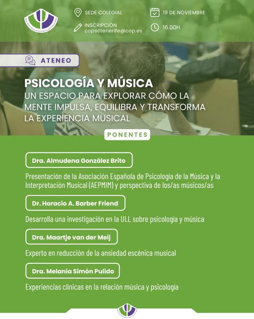 Felicitaciones a Almudena González Brito y sus colegas por sacar adelante esta iniciativa que le encargamos desde AEPMIM. Confiamos en que se pueda formar ese grupo de trabajo en Canarias y seguir ampliando el número de COPs en los que está presente la Psicología de la Música. Pasito a pasito vamos andando el camino.